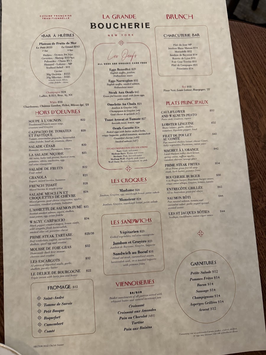 La Grande Boucherie’s menu offers a thoughtful selection of classic French dishes crafted with a balance of tradition and elegant simplicity. The menu fits perfectly with the restaurant’s refined Parisian brasserie atmosphere, inviting guests to enjoy delicious meals at any time of day—from a leisurely brunch to a relaxed dinner.